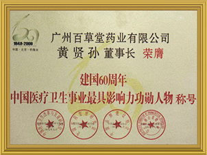 董事長黃賢孫 建國60周年中國醫療衛生事業最具影響力功勛人物
